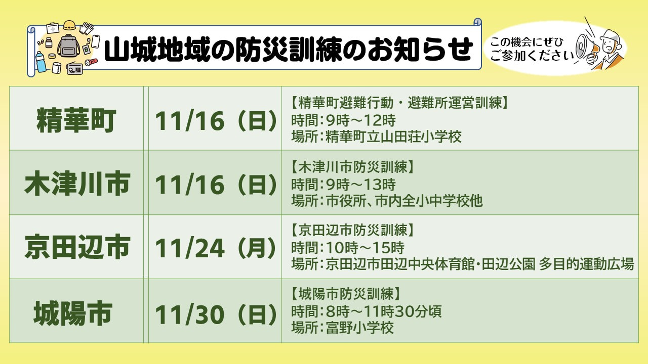 ▼山城地域の防災訓練情報▼