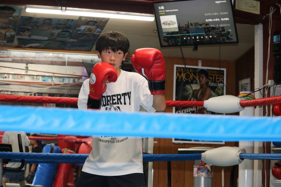 お父さんが体力づくりにと始めたボクシングに興味を持ち小学 2 年生からボクシングジムに通い始めます。
